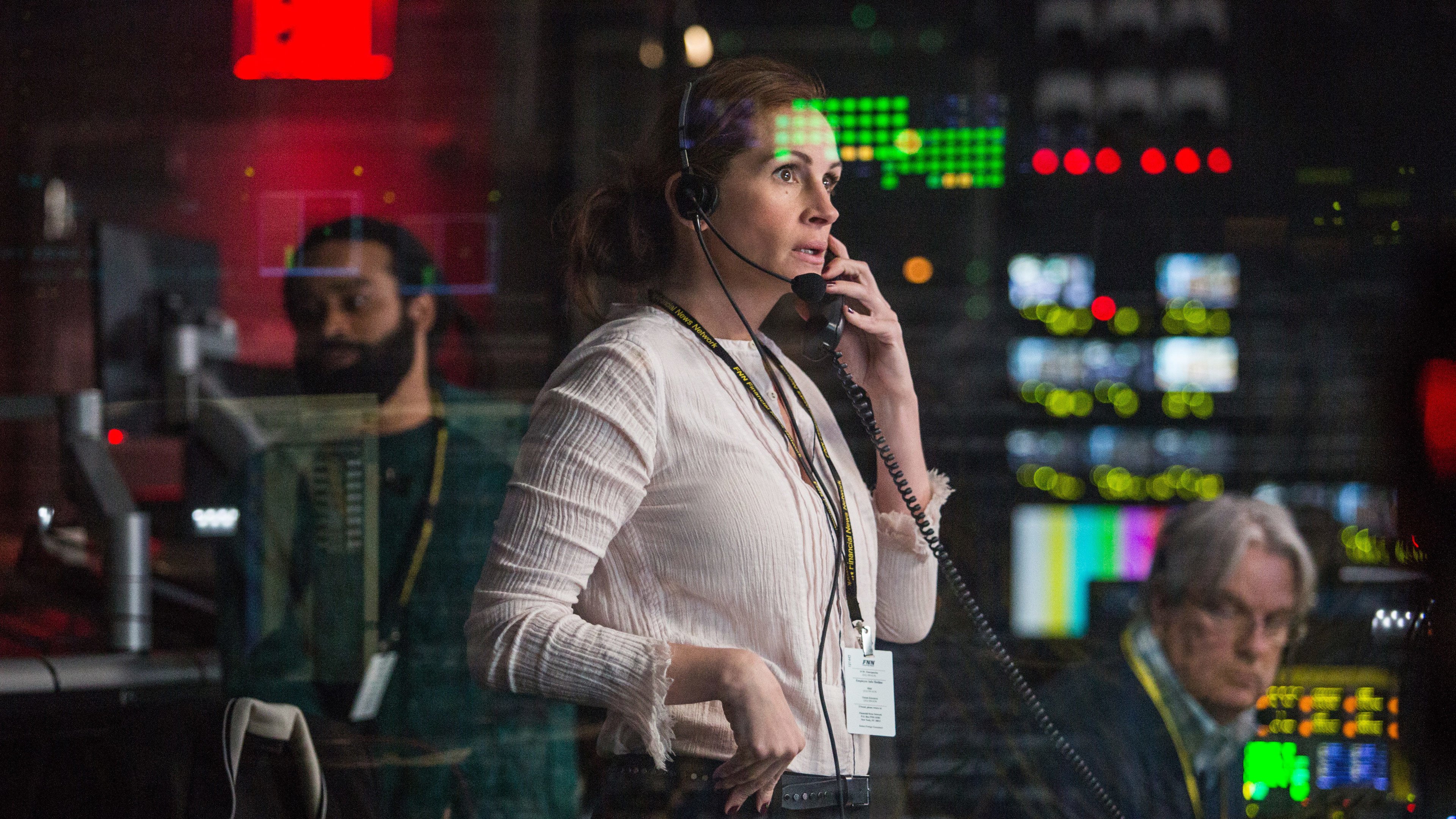 In the real-time, high stakes thriller Money Monster, George Clooney and Julia Roberts star as financial TV host Lee Gates and his producer Patty, who are put in an extreme situation when an irate investor who has lost everything (Jack O'Connell) forcefully takes over their studio. During a tense standoff broadcast to millions on live TV, Lee and Patty must work furiously against the clock to unravel the mystery behind a conspiracy at the heart of today's fast-paced, high-tech global markets.