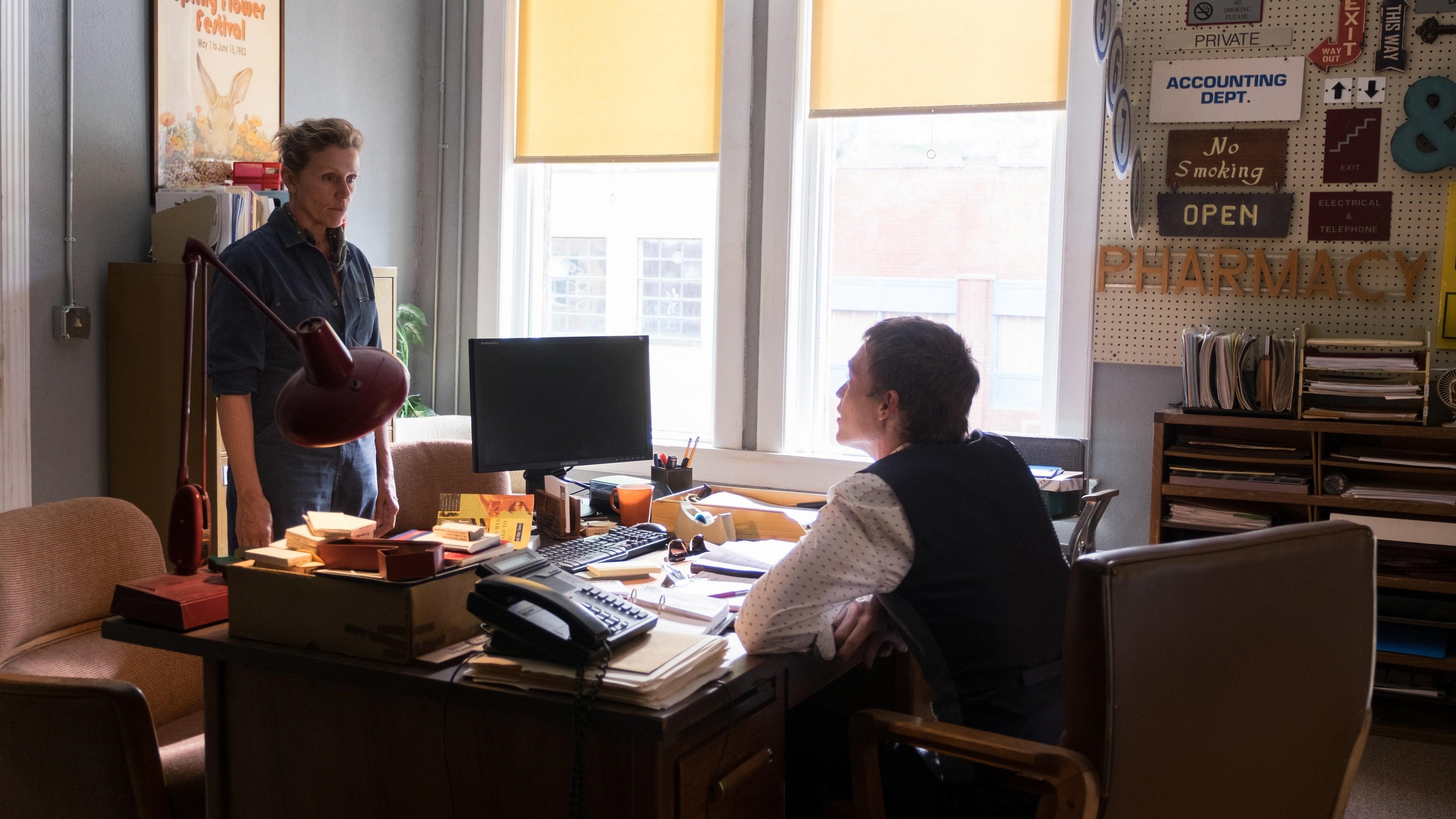 Frances McDormand (Mildred Hayes), Woody Harrelson (Bill Willoughby), Sam Rockwell (Jason Dixon), John Hawkes (Charlie Hayes), Peter Dinklage (James), Abbie Cornish (Anne Willoughby), Lucas Hedges (Robbie Hayes), Caleb Landry Jones (Red Welby), Samara Weaving (Penelope)