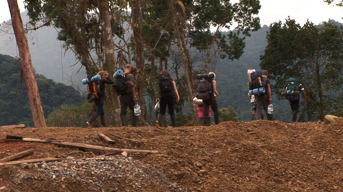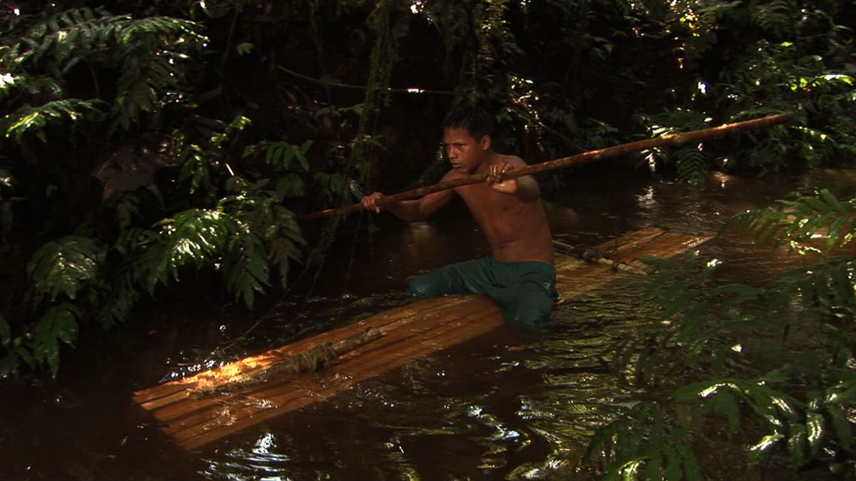 The mountain massif of Cutucú in the south of the Amazon region in Ecuador was a kind of defense against the environmental destruction for the native population but in the same time an obstacle. The people had no access to the modern world outside. The road through the Cutucú now allows mobility in order to exploit the fossil resurces but it grants the natives a way to reach the so called civilized world. The process happens in an unspectacular way. Where progress starts it cannot be stopped anymore. Escavating, digging, shovelling, grubbing, selling and buying: everyday madness. Excerpts from the film «Shuar, People of the Sacred Waterfalls» (1986) recall us, how in the traditional culture of the Shuar nature was an integrated part of life and mobility was achieved in the hallucinogenic ecstasy with no bounds. Today the natives are transporting wooden boards with horses to civilization. Wood is the fastest business, other products must first be created. Now the jungle disappears in everyday madness.